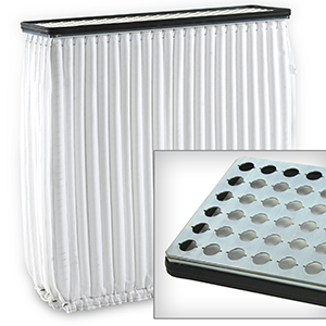 Bacho filterkassetter består av 255 st små filterpåsar. 15 st slangrader med 17 st filterpåsar i varje rad. Monteras med filtpackning upptill. Används för industriella processer där det behövs en stor filteryta och där det ställs höga krav på låga emissioner.